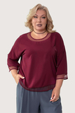 Блузка с круглым вырезом с прозрачной вставкой бордовая