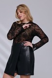 Женская блузка из мягкого фатина с круглым вырезом и длинными рукавами идеально облегает фигуру, позволяя носить её заправленной. Эта базовая модель легко сочетается с любыми элементами гардероба. Материал, в состав которого входят эластичные волокна, хорошо тянется, обеспечивая свободу движений. Растительный принт придаёт образу свежести и динамичности. Мягкий и приятный на ощупь материал обеспечивает комфорт в течение всего дня. Блузку можно комбинировать как с юбками разной длины, так и с брюками и джинсами.