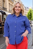 Оригинальная удлиненная рубашка прямого кроя. Круглый вырез с классическим отложным воротником. Рукава полной длины с приспущенной проймой по низу оформлены манжетами с пуговками (при желании можно присобрать патами). Модель застёгивается на оригинальные пуговки под планку. Кокетка на груди и закругленные бока способствуют оптимальной посадке по фигуре. Объемные накладные карманы на груди добавляют модели оригинальности. Закругленный нижний край по бокам не сковывает движений и искусно обыгрывает фигуру, маскируя мелкие недостатки. Рубашка отлично сочетается как с брюками, так и с легинсами.