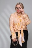 Блузка с завязкой спереди "яркие цветочки" оранжевая