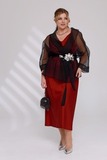Нежная накидка свободного кроя из мягкой органзы с запАхом. Глубокий V-образный вырез дополнен отложным воротом. Цельнокроеные рукава длиной 3/4 по низу оформлены широкой планкой. Тонкий и прозрачный материал, создаст неповторимый образ воздушности и подчеркнет вашу индивидуальность. Накидку можно носить как в стиле оверсайз, так и с классическими образами, подчеркнув талию поясом в тон. Независимо от времени года и погоды, эта накидка станет элегантным аксессуаром для любого случая.