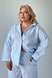 Стильный и комфортный костюм состоит из удлиненной рубашки и брюк выполненных из мягкого материала. Рубашка имеет классический отложной воротник и рукава полной длины с приспущенной проймой. Кокетка по спинке обеспечивает оптимальную посадку по фигуре. Модель застегивается на оригинальные пуговки по всей длине под планку.