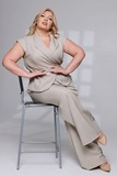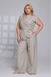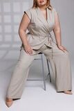 Элегантный костюм из мягкого материала состоит из жилета и брюк.