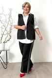 Оригинальные брюки свободного кроя выполнены из мягкого материала. Завышенная линия талии и эластичная резинка на поясе обеспечивают оптимальную посадку по фигуре. Модель привлекает внимание широким клешем. Кожаные лампасы по бокам освежают образ и зрительно вытягивают силуэт. Боковые карманы добавляют практичности. Подходят такие вещи представительницам прекрасного пола с разными типами фигуры. Прекрасно подойдут для комбинирования с водолазками, свитерами, блузками и рубашками. Эти модные брюки станут идеальным вариантом для создания стильного образа.