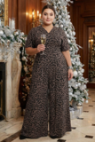 Эффектный комбинезон из мягкого материала имеет цельнокроеные короткие рукава. V-образный вырез на груди переходит в короткую молнию. Широкая резинка - венгерка по талии способствует оптимальной посадке по фигуре. Актуальный принт добавляет динамичности. По бокам практичные вшивные карманы. Модель привлекает внимание широким клёшем. Гламурный, лёгкий, выгодно подчеркивающий фигуру комбинезон сделает Вас заметной и выделит из толпы. Длина изделия на высокий рост 50 размера по спинке -154 см.на средний рост -149 см. В каждом следующем размере длина увеличивается.