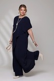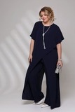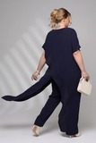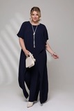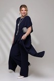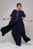 Стильный костюм из мягкого струящегося материала с крэш эффектом состоит из удлиненной туники и брюк. Удобные брюки-палаццо свободного кроя имеют завышенную линию талии. Брюки отлично сидят за счет комфортной резинки на поясе. По бокам практичные вшивные карманы.