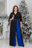 Стильный и очень эффектный комбинезон с запАхом - подчеркнет вашу женственность и изящность. Модель без подплечников, имеет короткие рукава. Прилегающий верх подчеркивает декольте благодаря V-образному вырезу. Рельефные вытачки на груди обеспечивают оптимальную посадку по фигуре. Линия талии подчеркнута с помощью пояса, который можно завязать в виде банта. Имеются шлевки. Модель застёгивается по спинке на скрытую тесьму - молнию. Прямые брючины свободного кроя с отлётными деталями по переду. Контрастные передние половинки, освежают образ, а талиевые вытачки по спинке - для оптимальной посадки по фигуре. Гламурный, легкий, выгодно подчеркивающий фигуру, комбинезон сделает вас заметной и выделит из толпы.