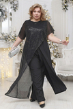 Костюм на мою не стандартную фигуру сел отлично. Брала для похода на юбилей, мерила на работе и колеги единогласно проголосовали за этот вариант, хотя были еще варианты выбора. Ткань прияная к телу, брюки на резинке, кчество ткани и пошива хорошие. Взяла на размер больше, чем ношу, но у меня не стандарт в фигуре. Обязательно надо мерить. Если понравилось, берите, рекомендую.