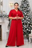 Эффектный комбинезон из мягкого материала имеет цельнокроеные короткие рукава. V-образный вырез на груди переходит в короткую молнию. Широкая резинка - венгерка и вытачки по талии способствует оптимальной посадке по фигуре. По бокам практичные вшивные карманы. Модель привлекает внимание широким клёшем. Гламурный, лёгкий, выгодно подчеркивающий фигуру комбинезон сделает Вас заметной и выделит из толпы.