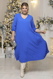 Стильное женское платье трапеция из мягкого гофрированного материала. Имеет классический V-образный вырез. Рукава полной длины по низу дополнены тонкой резинкой. Аккуратная плиссировка зрительно вытягивает силуэт и визуально стройнит. Полуприлегающий силуэт и мягкий материал искусно обыгрывают фигуру и дарят комфорт в течение всего дня. Стильный клатч и туфли на каблуках станут идеальным дополнением к нарядному образу.