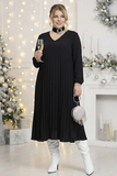 Стильное женское платье трапеция из мягкого гофрированного материала. Имеет классический V-образный вырез. Рукава полной длины по низу дополнены тонкой резинкой. Аккуратная плиссировка зрительно вытягивает силуэт и визуально стройнит. Полуприлегающий силуэт и мягкий материал искусно обыгрывают фигуру и дарят комфорт в течение всего дня. Стильный клатч и туфли на каблуках станут идеальным дополнением к нарядному образу.