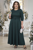 Романтичное платье «макси» с отрезной талией из плотного струящегося материала. Классический круглый вырез, рукава ¾ с широкими манжетами на пуговицах и однотонная расцветка подчеркивают элегантность модели. Прилегающий верх с формирующими швами отлично садится по фигуре. Нарядности добавляет россыпь бусин, под имитацию жемчуга, в области плеч и рукавов. Расклешенная струящаяся юбка с карманами искусно обыгрывает область бедер. Талию можно подчеркнуть широким съемным поясом-завязкой в тон. Застегивается на потайную молнию и пуговицу сзади.