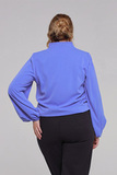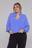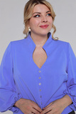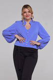 Блузка прямого кроя из мягкого струящегося материала. Круглый вырез, дополненный воротом-стойкой переходит в фигурный вырез на груди. Рукава полной длины по низу присобраны на эластичную резинку. Вытачки на груди способствуют оптимальной посадке по фигуре. Вертикальный шов, украшенный изящными пуговками, переходит по переду в небольшой разрез. Полуприлегающий силуэт блузки искусно обыгрывает фигуру и не сковывает движений. Отлично сочетается как с брюками, так и с юбками.