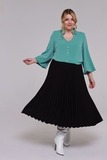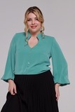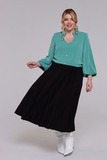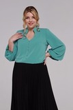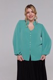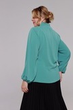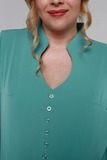 Блузка прямого кроя из мягкого струящегося материала. Круглый вырез, дополненный воротом-стойкой переходит в фигурный вырез на груди. Рукава полной длины по низу присобраны на эластичную резинку. Вытачки на груди способствуют оптимальной посадке по фигуре. Вертикальный шов, украшенный изящными пуговками, переходит по переду в небольшой разрез. Полуприлегающий силуэт блузки искусно обыгрывает фигуру и не сковывает движений. Отлично сочетается как с брюками, так и с юбками.