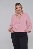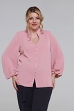 Блузка прямого кроя из мягкого струящегося материала. Круглый вырез, дополненный воротом-стойкой переходит в фигурный вырез на груди. Рукава полной длины по низу присобраны на эластичную резинку. Вытачки на груди способствуют оптимальной посадке по фигуре. Вертикальный шов, украшенный изящными пуговками, переходит по переду в небольшой разрез. Полуприлегающий силуэт блузки искусно обыгрывает фигуру и не сковывает движений. Отлично сочетается как с брюками, так и с юбками.
