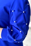 Лаконичное платье прямого кроя из мягкой ткани имеет круглый вырез. Изюминкой платья являются рукава длиной ¾, украшенные россыпью камней, что добавляет образу изящества и блеска. Вытачки на груди и по спинк е способствуют оптимальной посадке по фигуре. Центральный шов по спинке переходит в кокетливую шлицу. Полуприлегающий силуэт искусно обыгрывает фигуру, а приятный телу материал дарит комфорт в течение всего дня. Стильный клатч и туфли на каблуках станут идеальным дополнением к нарядному образу.