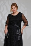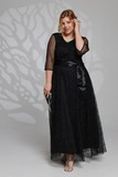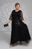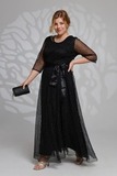 Элегантное платье из мягкой струящейся ткани - подчеркнет вашу женственность и изящность. Модель без подплечников, имеет прозрачные рукава ¾. Полуприлегающий верх идет с классическим круглым вырезом. Платье отрезное по линии талии. Вытачки на груди и по спинке обеспечивают оптимальную посадку по фигуре. Линия талии подчеркнута с помощью пояса, который можно завязать по желанию (в виде банта). Свободная юбка создает женственный силуэт и искусно обыгрывает бедра. Фатиновый верх платья с флоковым напылением в оригинальный принт добавляет модели воздушности и лёгкости. Яркий клатч и туфли на каблуках станут идеальным дополнением к нарядному образу.