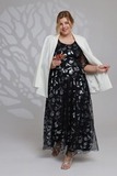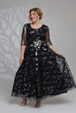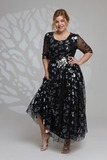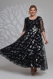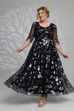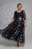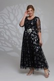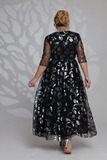 Элегантное платье из мягкой струящейся ткани - подчеркнет вашу женственность и изящность. Модель без подплечников, имеет прозрачные рукава ¾. Полуприлегающий верх подчеркивает декольте благодаря V-образному вырезу. Платье отрезное по линии талии. Вытачки на груди и по спинке обеспечивают оптимальную посадку по фигуре. Линия талии подчеркнута с помощью пояса, который можно завязать по желанию (в виде банта). Свободная юбка создает женственный силуэт и искусно обыгрывает бедра. Фатиновый верх платья с лаковым напылением в оригинальный принт добавляет модели воздушности и лёгкости. Яркий клатч и туфли на каблуках станут идеальным дополнением к нарядному образу.