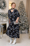 Платье выполнено из нежной, струящейся, приятно прилегающей к телу ткани. Изящный V-вырез добавляет женственности. Цельнокроеные рукава длиной 3/4 оформлены узкой планкой по низу. Свободный крой стройнит, скрывая недостатки фигуры. Центральный шов по спинке способствует оптимальной посадке по фигуре. Актуальный принт добавляет динамичности и оригинальности. По желанию можно присобрать талию поясом в тон. Платье подойдет для офисного стиля с базовым пиджаком и обувью на высоких каблуках. Модель отлично сочетается с любыми вещами в гардеробе, а значит это незаменимый помощник выглядеть каждый день по-новому.