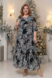 Легкое шифоновое платье "макси" свободного силуэта на съемной подкладе. Имеет круглый вырез и рукава ¾ с манжетами на завязках. Платье отрезное по линии груди с многоярусной расклешенной юбкой. Свободный крой не сковывает движений и скрывает несовершенства фигуры. Модель приятна телу, хорошо сидит и красиво обыгрывает фигуру. Нежный принт по всему изделию добавляет образу динамичности. Стильное платье в пол идеально подойдет для торжественных мероприятий разного характера и для летних прогулок. Подчеркните лаконичность образа длинными серьгами и туфлями на высоких каблуках.