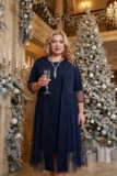 Платье имеет круглый вырез и короткие рукава. Вытачки на груди и по спинке способствуют оптимальной посадке по фигуре. Комплект из платья полуприлегающего силуэта и накидки из воздушного фатина станет неотъемлемой частью Вашего гардероба и станет идеальным нарядом для любого повода. Стильный клатч и туфли на каблуках станут идеальным дополнением к нарядному образу.