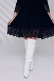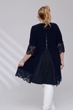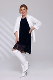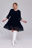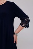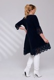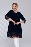 Платье-туника из мягкого трикотажа станет украшением Вашего гардероба. Имеет круглый вырез и рукава длиной 7/8, которые как низ изделия украшены ажурным кружевом, придавая модели нежности и романтичности. Свободный крой искусно обыгрывает фигуру, а вытачки на груди обеспечивают идеальную посадку. Небольшие подплечники стройнят и зрительно вытягивают силуэт, делая образ более изящным и утончённым. Эта модель станет отличным выбором для тех, кто хочет добавить в свой гардероб что-то особенное и нарядное.