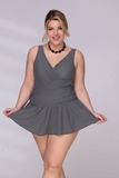 Купальник «свим-дресс» — модный вариант для тех, кто хочет создать интригующий и образ, и при этом скрыть недостатки фигуры. Благодаря глубокому U-образному вырезу спинки и широким бретелям, этот купальник обладает возможностью комфортного надевания и отличной фиксацией на теле. Лиф дублирован подкладкой из мягкой микрофибры и имеет поролоновые чашечки. Резинка по низу красиво обрамляет грудь, а широкие бретельки обеспечивает хорошую поддержку. Модель имеет классический вырез бёдер, который способствует оптимальной посадке по фигуре. Кокетливая юбка, под которым скрываются трусики, искусно обыгрывает область бедер. Актуальный гороховый принт добавляет модели динамичности, а однотонная вставка с рюшами по переду зрительно вытягивает силуэт и визуально стройнит. Эластичный материал обеспечивает комфорт и свободу движения. В этом формирующем фигуру купальнике вы наилучшим образом продемонстрируете свою элегантность и чувство стиля. (Материал устойчив к воздействию хлора. Чтобы сохранить первоначальный цвет и вид купальника, рекомендуем деликатную ручную стирку при температуре не более 30 градусов)