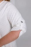 Стильное платье из мягкого материала. Модель имеет U-образный вырез. Рукава длиной 3/4 можно присобрать, при желании, хлястиком. Небольшие стразы по всему платью добавляют наряду блеск и изящество. Свободный силуэт и мягкий материал искусно обыгрывают фигуру и дарят комфорт в течение всего дня. Платье создано для того, чтобы подчеркивать достоинства и скрывать недостатки. Стильный клатч и туфли на каблуках станут идеальным дополнением к нарядному образу.