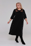 Платье свободный крой со стразами с прозрачными вставками на груди черное