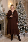 Элегантное платье из мягкого шифона на подкладке подчеркнет вашу женственность и изящность. Прозрачные рукава полной длины по низу присобраны на тонкую резинку. V-образный вырез на груди украшен кокетливыми рюшами, что добавляет модели нарядности. Завышенная линия талии красиво присобрана тонкой резинкой. Расклешенная струящаяся юбка искусно обыгрывает область бедер и добавляет женственности. Легкий струящийся материал виртуозно обыгрывает фигуру благодаря свободному крою модели. Платье создано для того, чтобы подчеркивать достоинства и скрывать недостатки. Вам нужно лишь добавить яркие аксессуары, обувь на каблуках и идеальный образ готов!