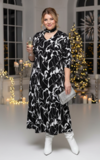Платье V-вырез с завязкой на вороте "белые разводы" черное