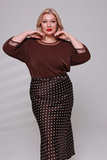 Костюм жакет бежевый с юбкой в горошек темно-коричневый