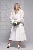Лаконичная туника из мягкого воздушного шифона на эластичной подкладке. Модель имеет круглый вырез. Изюминкой модели являются широкие воздушные рукава с асимметричным низом длиной 7/8. Мягкая ткань струится вдоль тела, искусно обыгрывая силуэт и скрывая недостатки. При желании можно обозначить талию изящным поясом в тон. Модель прекрасный вариант, чтобы разнообразить гардероб чем-то красивым и нарядным образом. Туника отлично сочетается с юбками, узкими брюками и легинсами.