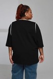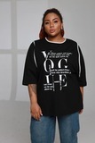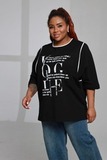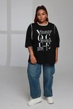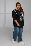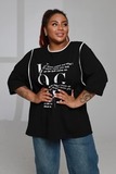 Модная туника свободного кроя с белыми надписями — удобный и актуальный вариант для повседневного гардероба. Лёгкий силуэт и рукав длиной ½ делают модель комфортной и практичной в носке.