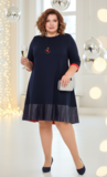 Свободный силуэт платья-трапеции позволяет корректировать фигуру. Круглый ворот. Длина рукава 3/4.Облегающий верх наряда подчёркивает пышную грудь, далее от подмышек
