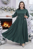Романтичное платье «макси» с отрезной талией из плотного струящегося материала. Классический круглый вырез, рукава ¾ с широкими манжетами на пуговицах и однотонная расцветка подчеркивают элегантность модели. Прилегающий верх с формирующими швами отлично садится по фигуре. Нарядности добавляет россыпь бусин, под имитацию жемчуга, в области плеч и рукавов. Расклешенная струящаяся юбка с карманами искусно обыгрывает область бедер. Талию можно подчеркнуть широким съемным поясом-завязкой в тон. Застегивается на потайную молнию и пуговицу сзади.