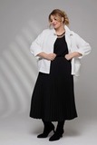 Стильный жакет прямого кроя из мягкого фактурного материала. Круглый вырез, дополненный воротником-стойкой, придаёт модели современный и элегантный вид. Приспущенные рукава полной длины согреют в холодную погоду. Модель застегивается по всей длине на оригинальные пуговки. Объёмные карманы по бокам добавляют практичности. Эта свободная куртка отлично подойдет для завершения стильного образа.