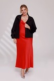 Здравствуйте! На болеро заглядывалась давно, как на праздничный концертно-театральный верхний слой. Но боялась, что в застегнутом виде будет не интересно... Но решилась и... Есс! Оно идеально. И накинуть, и расстёгнутой, и застегнутое. Брала в размер. 54 размер на 106-94-118. Болеро - атмосфера, сразу создаёт праздничное настроение. В чемодане слабо мнется, утюгом прекрасно разглаживается. Повторюсь, покрой удивительный.