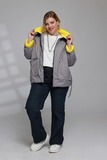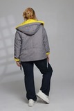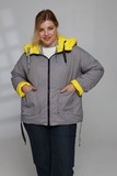 Ветровка, утепленная одним слоем синтепона – прекрасно подойдет для холодной весны и осени. Модель прямого кроя, застегивается на двойную пластиковую молнию спереди. Имеет большой капюшон на широких лентах-завязках с контрастной подкладкой. Модель имеет рукава полной длины, оформленные по низу контрастным отворотом. Объемные накладные карманы по бокам добавляют практичности. Формирующие швы по спинке обеспечивают оптимальную посадку по фигуре. Длину изделия по бокам можно регулировать лентами с модными надписями. Обладая достаточно свободным кроем, модель не сковывает движений и скрывает возможные несовершенства фигуры. В прохладную погоду ветровка не только защитит от холода, но и поможет оставаться стильной и женственной.