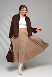 Стильная юбка из мягкого материала подчеркнет достоинства женской фигуры. Плиссированная юбка из мягкого струящегося материала на подкладке. Струящийся материал искусно обыгрывает область бедер и добавляет образу женственности и романтизма. Линия талии на притачной резинке. Носить юбку такого плана можно с любимыми футболками, обтягивающими водолазками, блузами и рубашками.