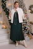 Элегантное болеро прямого кроя выполнено из мягкого материала без подкладки. Модель оснащена круглым вырезом с воротником-стойкой и цельнокроеными рукавами длиной 3/4. Прозрачная вставка на рукавах украшена оригинальной бахромой, что придаёт изделию женственность и утончённость. Болеро застёгивается на практичные кнопки по всей длине. Приталенный силуэт идеально подходит для создания стильного образа.