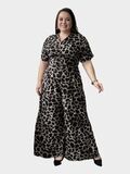 Эффектный комбинезон из мягкого материала имеет цельнокроеные короткие рукава. V-образный вырез на груди переходит в короткую молнию. Широкая резинка - венгерка по талии способствует оптимальной посадке по фигуре. Актуальный принт добавляет динамичности. По бокам практичные вшивные карманы. Модель привлекает внимание широким клёшем. Гламурный, лёгкий, выгодно подчеркивающий фигуру комбинезон сделает Вас заметной и выделит из толпы.