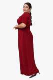 Эффектный комбинезон из мягкого материала имеет цельнокроеные  короткие рукава. V-образный вырез на груди переходит в короткую молнию. Широкая резинка - венгерка и вытачки по талии способствует оптимальной посадке по фигуре. По бокам  практичные вшивные карманы. Модель привлекает внимание широким клёшем. Гламурный, лёгкий, выгодно подчеркивающий фигуру комбинезон сделает Вас заметной и выделит из толпы.