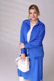 Стильный женский костюм из мягкого струящегося материала состоит из рубашки и юбки. Удлиненная рубашка свободного кроя имеет классический отложной воротник. Вытачки на груди и закругленные бока способствуют оптимальной посадке по фигуре. Модель застегивается спереди под планку на пуговицы по всей длине. Рукава полной длины с приспущенной проймой по низу оформлены манжетами с пуговками. Юбка прямого силуэта виртуозно обыгрывает фигуру благодаря оригинальному крою модели. Пояс на резинке способствует оптимальной посадке по фигуре. Женственный костюм идеально подойдет для торжественных мероприятий разного характера. Подчеркните лаконичность образа длинными серьгами и туфлями на высоких каблуках. Элементы костюма можно также носить по отдельности.
