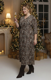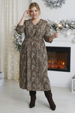 Платье выполнено из нежной, струящейся, приятно прилегающей к телу ткани. Изящный V-вырез добавляет женственности. Цельнокроеные рукава длиной 3/4 оформлены узкой планкой по низу. Свободный крой стройнит, скрывая недостатки фигуры. Центральный шов по спинке способствует оптимальной посадке по фигуре. Актуальный принт добавляет динамичности и оригинальности. По желанию можно присобрать талию поясом в тон. Платье подойдет для офисного стиля с базовым пиджаком и обувью на высоких каблуках. Модель отлично сочетается с любыми вещами в гардеробе, а значит это незаменимый помощник выглядеть каждый день по-новому.