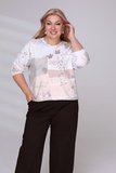 Джемпер с абстрактным рисунком "цветы" пудрово-белый