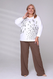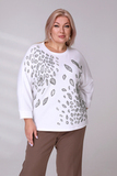 Джемпер прямого кроя из мягкого трикотажа согреет Вас в холодную погоду. Имеет круглый вырез с небольшим кантом по краям. Цельнокроеные рукава длиной 3/4 снизу присобраны широкой планкой. Оригинальный принт, декорированный стразами добавляет нарядности и освежает образ. Такая универсальная модель подходит ко всему, а приятный на ощупь материал - обеспечивает комфорт и уют на весь день. Модель отлично сочетается с брюками и юбками.