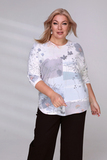 Джемпер прямого кроя из мягкого трикотажа с добавлением нитей кашемира согреет Вас в холодную погоду. Имеет круглый вырез и приспущенные рукава длиной 3/4.  Небольшие разрезы по бокам способствуют оптимальной посадке по фигуре. Оригинальный принт  добавляет динамичности и освежает образ. Такая универсальная модель подходит ко всему, а приятный на ощупь материал - обеспечивает комфорт и уют на весь день. Модель  отлично сочетается с брюками и юбками.