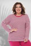 Лонгслив свободного силуэта из мягкого трикотажа искусно обыгрывает фигуру и не сковывает движений. Круглый вырез декорирован узким однотонным кантом. Приспущенные рукава имеют полную длину. Полосатый принт добавляет динамичности и освежает образ. Небольшие разрезы по бокам способствуют оптимальной посадке по фигуре. Такая универсальная модель подходит ко всему, а приятный на ощупь материал обеспечит комфорт и уют на весь день. Модель отлично сочетается с брюками и юбками.