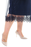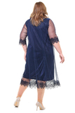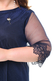Элегантное платье с необычным эффектом «2 в 1». Благодаря дизайну создается имитация комплекта из платья полуприлегающего силуэта и накидки из воздушного фатина. Имеет круглый вырез и рукава длиной 3/4. Подол накидки и рукавов украшены мягким ажуром, что добавляет модели женственности. Вытачки на груди обеспечивают оптимальную посадку по фигуре. Оригинальная брошь на груди и нити люрекса добавляют образу нарядности. Платье станет идеальным нарядом для любого повода. Стильный клатч и туфли на каблуках станут идеальным дополнением к нарядному образу.